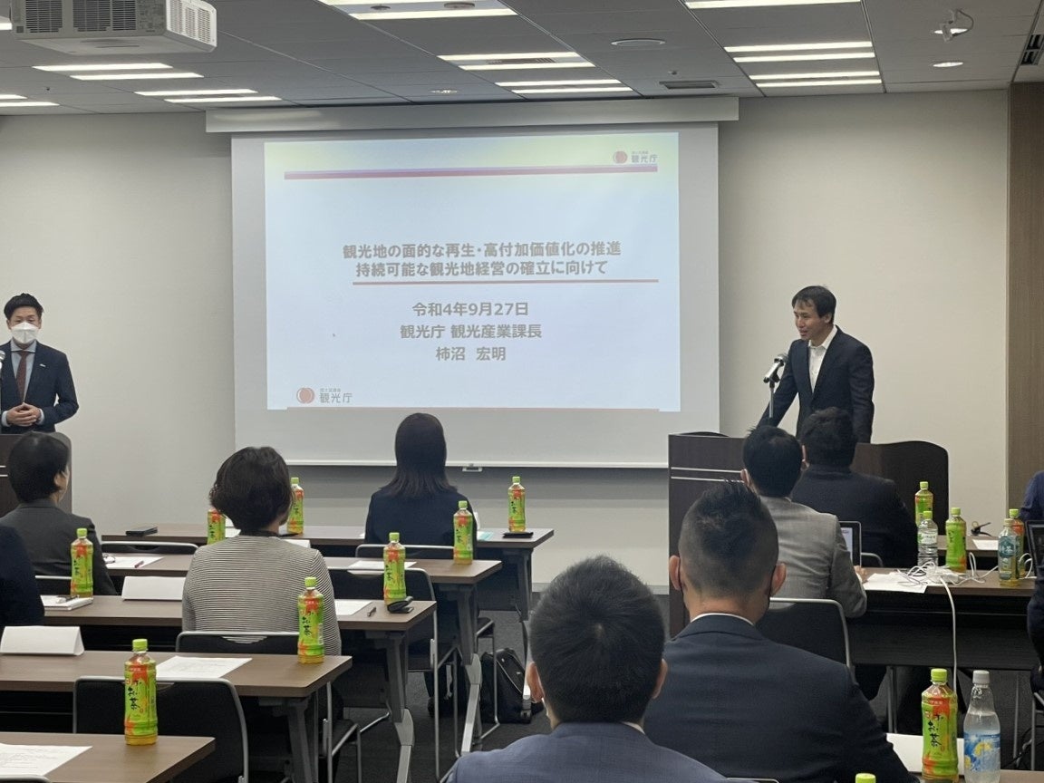 さらに、意見交換会の冒頭では観光庁観光産業課の柿沼課長より 『観光地の面的な再生・高付加価値化の推進持続可能な観光地経営の確立に向けて』をテーマに、アフターコロナにおける観光産業の再生に向けた旅館ホテルの役割を中心に講演いただいた。