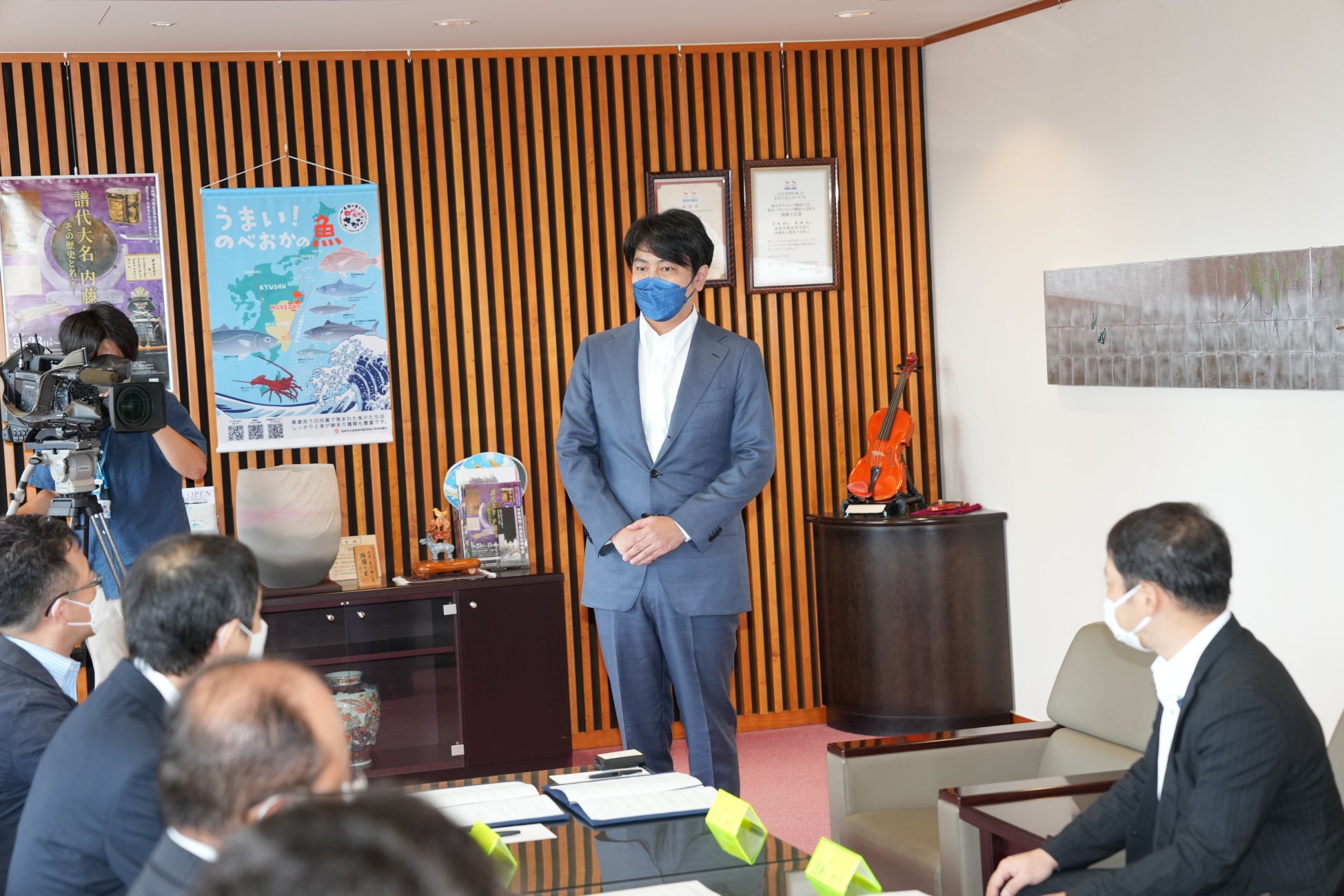 延岡市の読谷山洋司市長からは、「サステナブルプラットフォームを軸にした延岡市のIT企業のパイプ役としての役割を期待しています。」と訓示を頂戴しました。