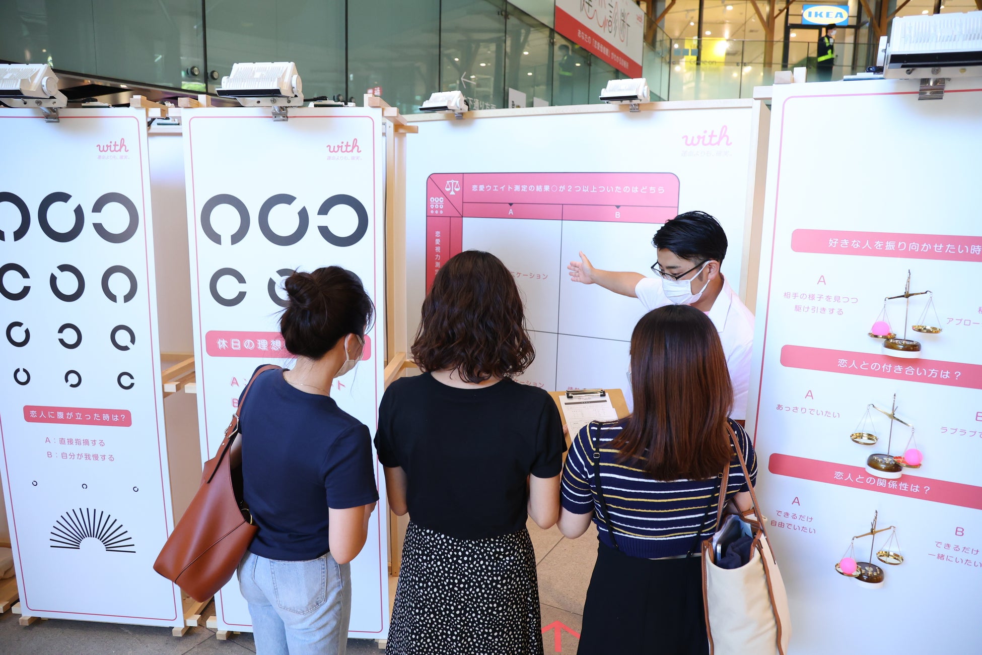 恋活・婚活マッチングサービス「with」(株式会社with、本社:東京都渋谷区、代表取締役CEO:小野澤香澄、同CBO:五十嵐昭人、以下「with」)は、原宿駅から徒歩1分のWITH HARAJUKUにて、まるで”健康診断”のように、自分の「恋愛における価値観」について診断できるイベント「健恋診断」を2022年7月29日(金)から2022年8月7日(日)まで期間限定で開催しています。初日から4日間で「健恋診断」の体験者は累計1515名を突破。3つのコースを受診するだけで自分の「恋愛価値観」を楽しみながら知ることができる体験となっており、多くの方にご来場いただいています。