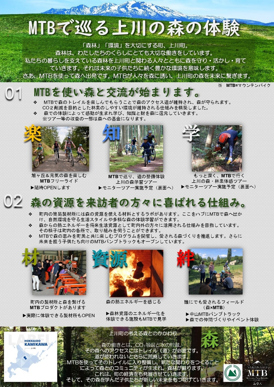 「上川町」と「山守人」の、森のMTB活用による持続可能な街づくり「北の山岳リゾート」を目指す新たな取り組みの内容が、この度オープニングイベントにて発表されました。