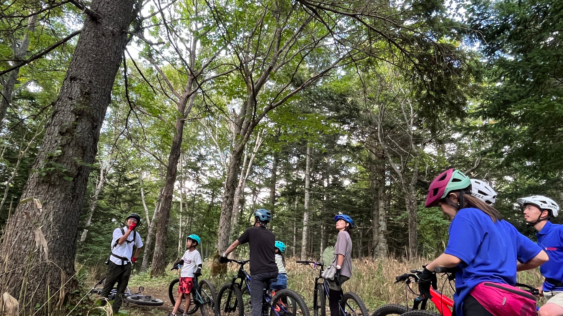 MTBのスキルを楽しく身につけた後は、いよいよ森林の中へE-MTBで向かい、森林のプロから森について学ぶ、森林学習サイクリングツアーです!
