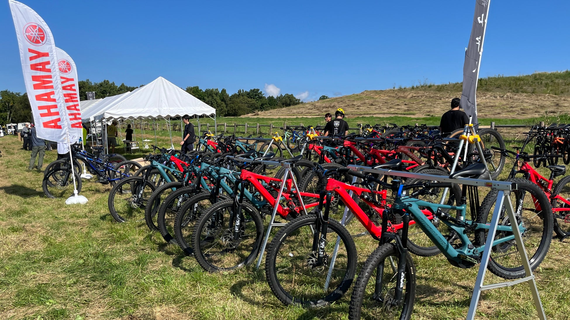 イベントには、最新のE-MTB(電動アシスト付マウンテンバイク)のYAMAHA製YPJ-MT Pro、Specialized製LEVO SL、LEVO SL Kid'sが約30台、12インチ~24インチの子供用MTBが約30台、合計約60台の本格的なMTBが集結しました。