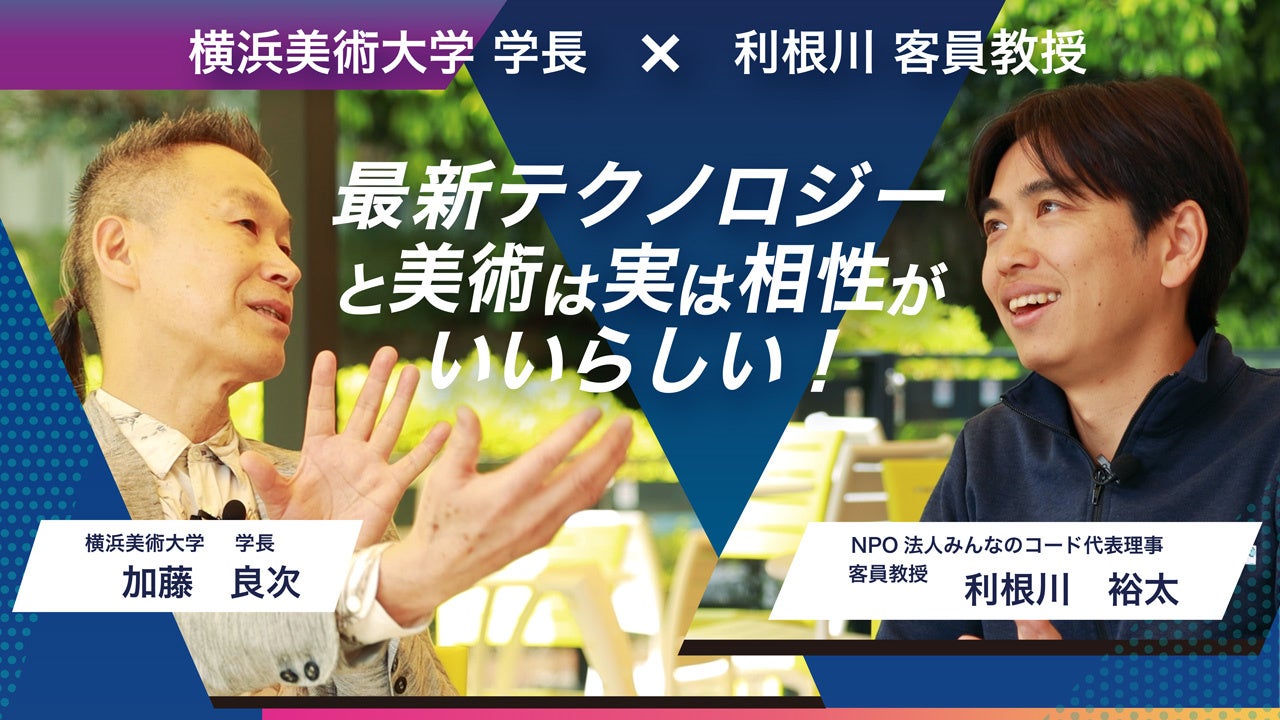 客員教授への就任を記念し、横浜美術大学 加藤良次学長と利根川客員教授による対談記事および対談動画が公開されました。加藤学長と利根川客員教授が、美術教育とテクノロジーの可能性について議論します。