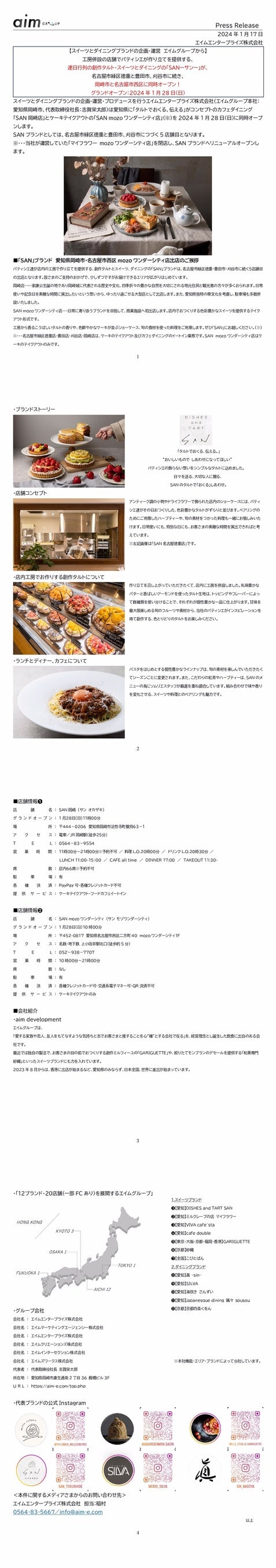 ※・・・名古屋市緑区徳重店・豊田店・刈谷店・岡崎店は、ケーキのテイクアウト及びカフェダイニングのイートイン業態です。SAN mozoワンダーシティ店はケーキのテイクアウトのみです。
