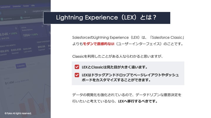 また、Salesforce Classicのサポートが終了することからLEX(Lightning Experience)への移行の必要性を感じていたものの、費用と時間の問題から後回しになっている状況でした。