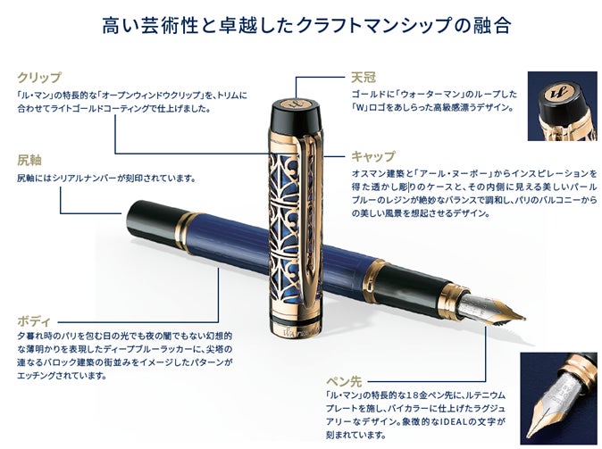 高い芸術性と卓越したクラフトマンシップ:フランス高級筆記具ブランド「WATERMAN」から、至高の逸品「ル・マン ブルー ドゥ パリ リミテッドエディション」新発売