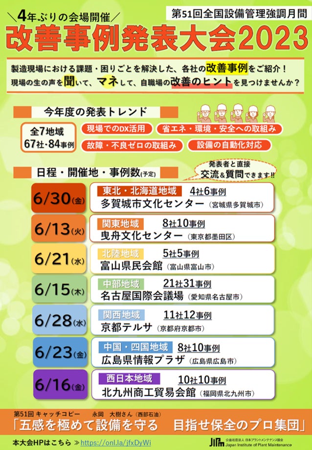 「改善事例発表大会2023」全国7会場で開催!他社の事例発表を聴けるとともに、改善に取り組む企業同士の交流の場としてご活用ください!