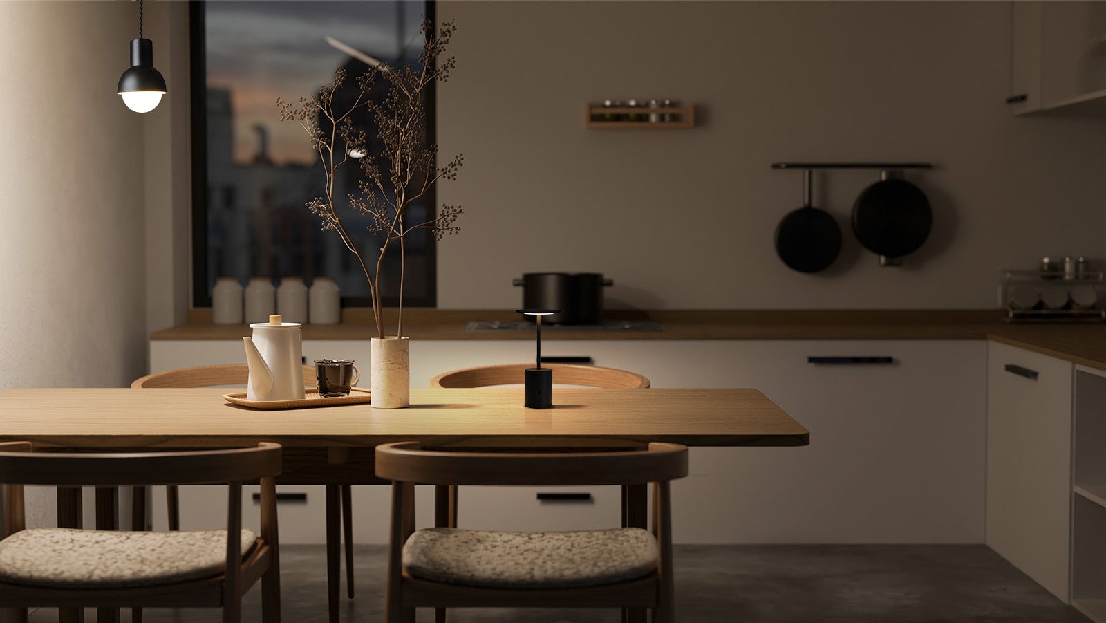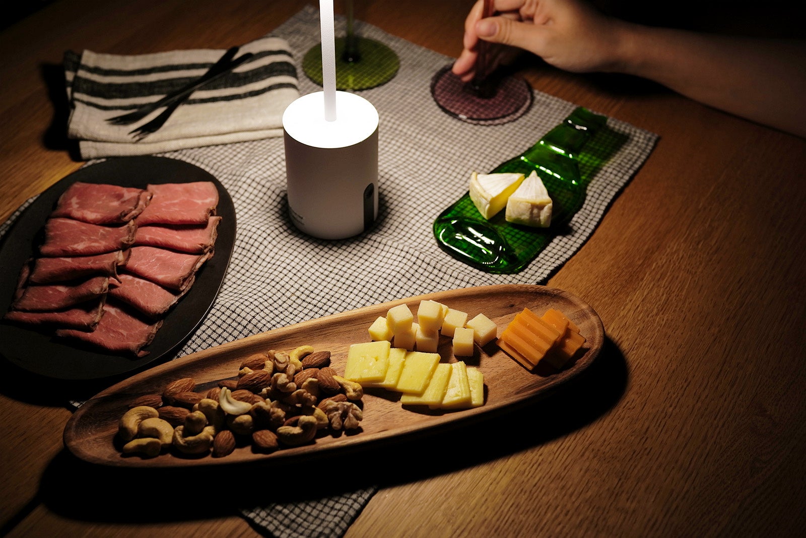 仕事、子育て、家事―1日の全てがようやく終わり、ほっと一息。寝る前の一杯をより美味しく彩るのは、カクテリアポータブルランプです。カクテルグラスをイメージした、スタイリッシュでシャープなデザイン。仕事の疲れや子育ての喧騒から解放され、一人で、またはパートナーと、束の間のゆっくりと過ごせる時間を演出します。明るい照明は消して、卓上の温かな光でほんのりと。晩酌を、毎日を、少しだけ特別なものに変えるランプです。