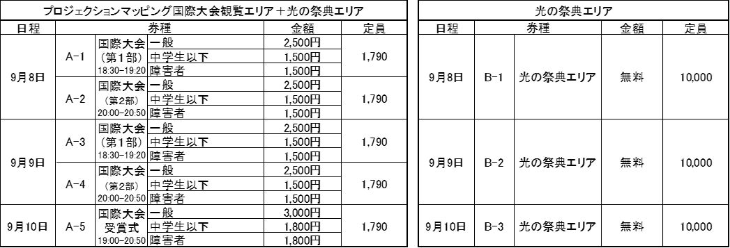 【A】国際大会観覧エリア+光の祭典エリア 1,790枚/回