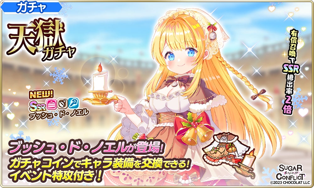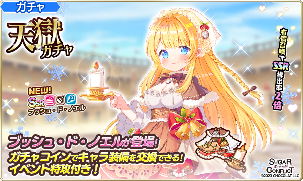 「夜空きらめくクリスマスマーケット」にも登場する新キャラ「ブッシュ・ド・ノエル」が天獄ガチャにて登場!