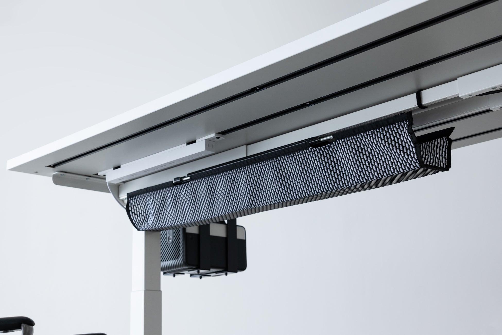 PREDUCTS DESKは「Desk Modular System」を備えたモジュール式拡張デスクです。 天板裏に埋め込んだ4本のレールにより、様々なモジュールが装着可能なDESK MODULAR SYSTEM。電源タップを固定しケーブルを