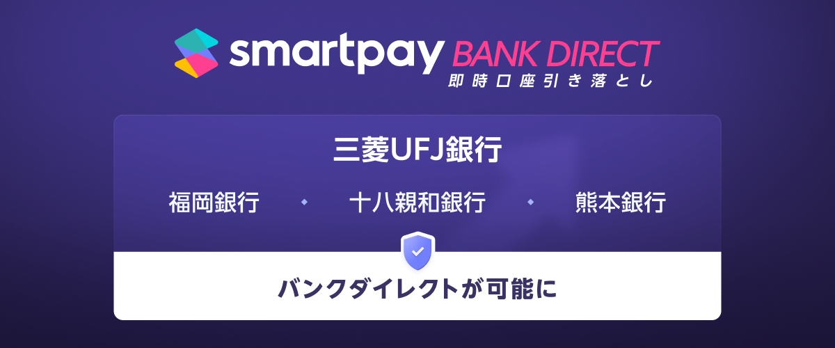 Smartpay、銀行口座からの即時引き落とし機能「バンクダイレクト」に三菱UFJ銀行、ふくおかFGの3行が新たに追加