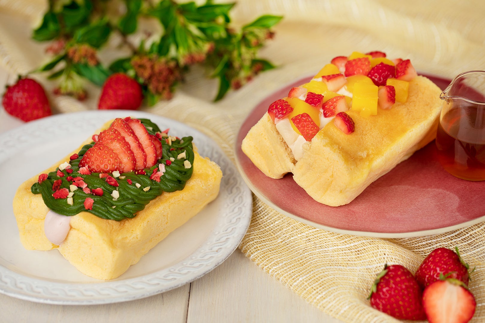 春水堂の台湾カステラの生地は、卵の味がしっかり感じられる懐かしく素朴な味。新作「台湾カステラ フルーツ」は、無添加の茶葉から店舗で淹れた紅茶を混ぜたミルクティー生クリームの上に苺とマンゴーをトッピングしました。別添えのはちみつにも紅茶が入っており、芳醇な香りも一緒にお楽しみいただけます。また「台湾カステラ 抹茶苺」は、苺ピューレを混ぜた淡いピンクの生クリームの上に宇治抹茶入りカスタードクリームをトッピングし、苺とナッツを飾り付けました。ほろ苦い宇治抹茶が香る期間限定商品です。いずれもテイクアウトでき、店内でお食事やドリンクと一緒にご注文いただくと、ハーフサイズをワンコイン・500円でお召し上がりいただけます。