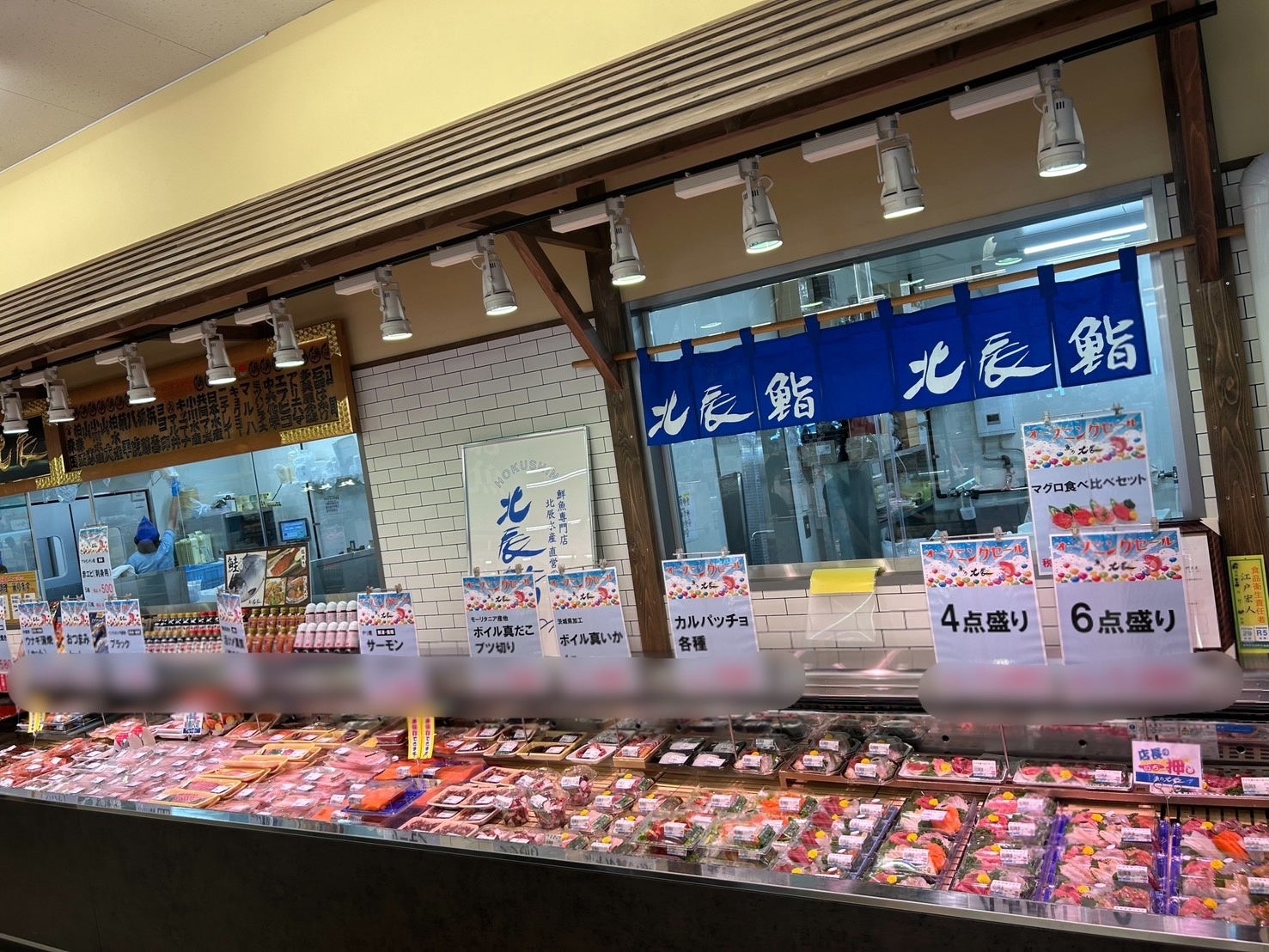 魚の北辰が食の駅 吉岡店に 新しくオープンしました。新鮮なお魚やお鮨など、種類豊富なメニューを取り揃えております。 みなさまのお越しをぜひお待ちしております。