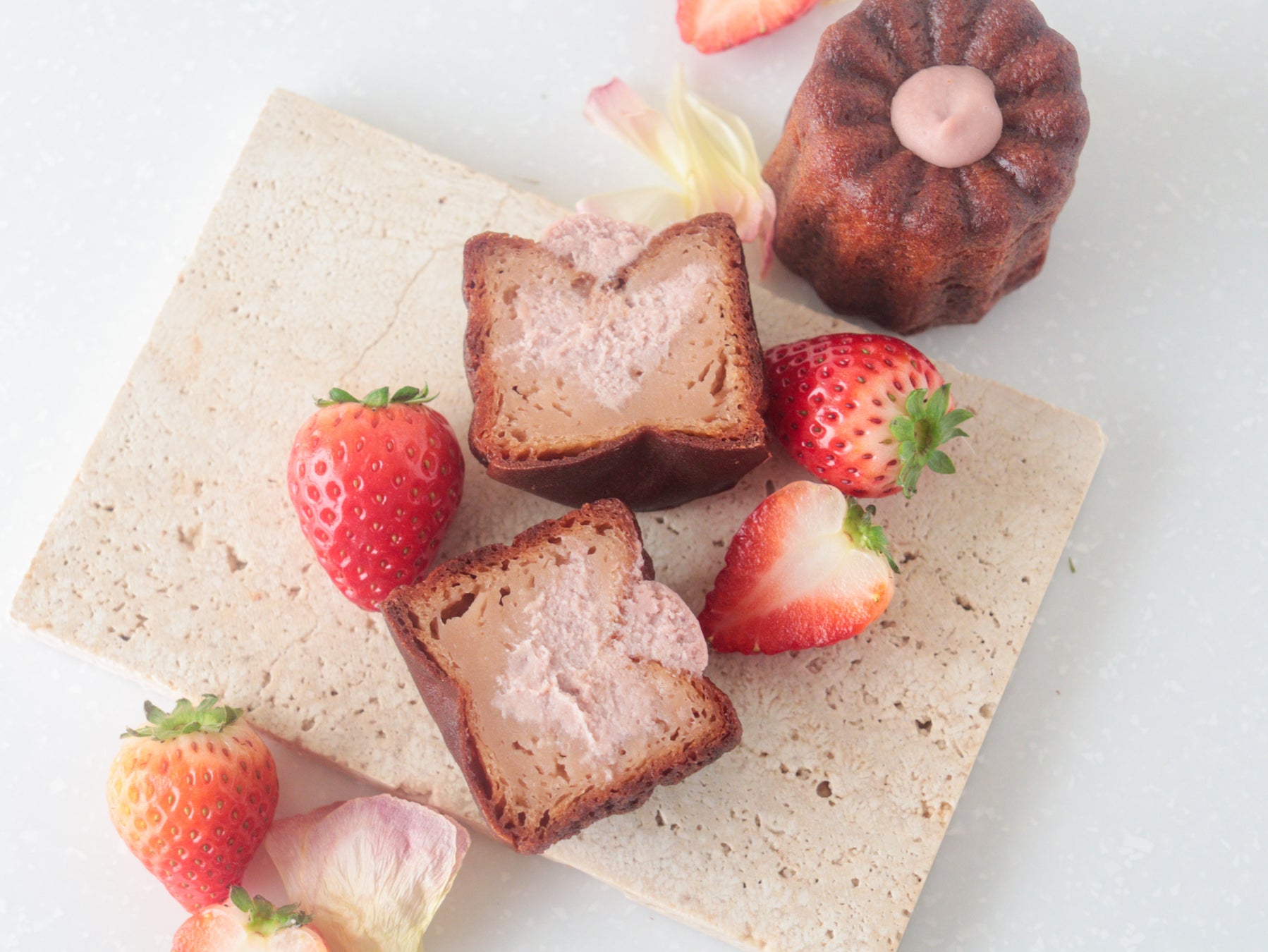 ビーガンホワイトチョコを使用したミルキーな苺チョコカヌレ