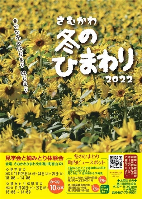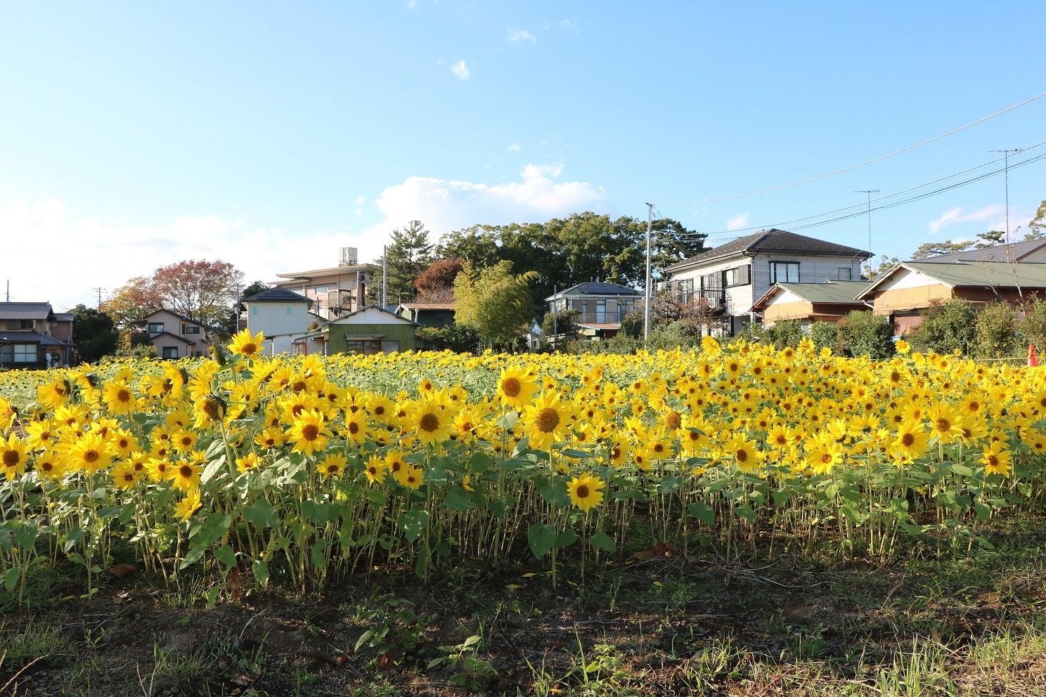 今年で7年目となる「冬のひまわり」は、ボランティアの方々と一般社団法人寒川町観光協会により、町内の畑や花壇に種を撒き、丹精込めて育ててきました。これは、「寒川」の町名から連想される寒々しいイメージを変えようと、寒川町観光協会が発案し始まった取り組みで、遊休地を活用としている側面もあり、咲き終わった後のひまわりは、じゃがいもの肥料に使われています。