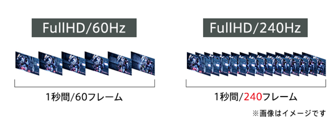 1. 高いリフレッシュレートと残像感の少ない1ms(ミリ秒)の応答速度