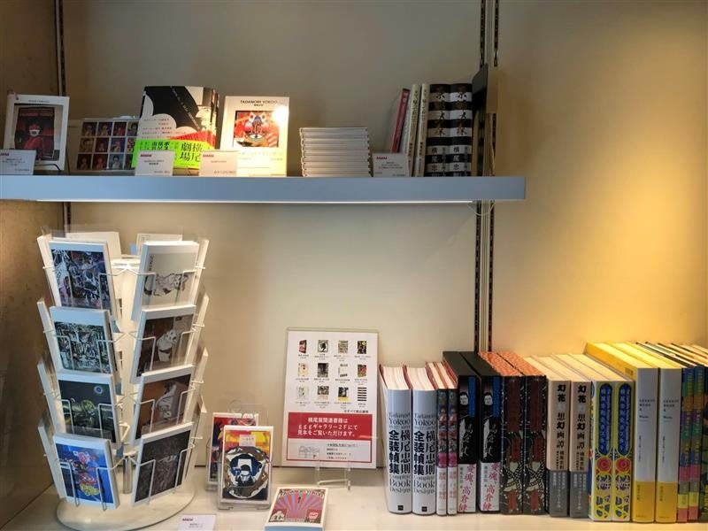 1F会場では、人気のポストカード(50種類以上)をはじめ、数々の書籍などが並びます。また、作家本人のサイン入りの作品も数量限定で展示販売しているので、横尾忠則ファンには見ごたえがある内容になっています。