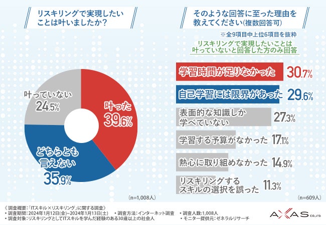 【1,008名にアンケート調査/約6割がリスキリングで実現したいことが叶っていない?!】30歳以上のITリスキリング経験者に聞いた実態