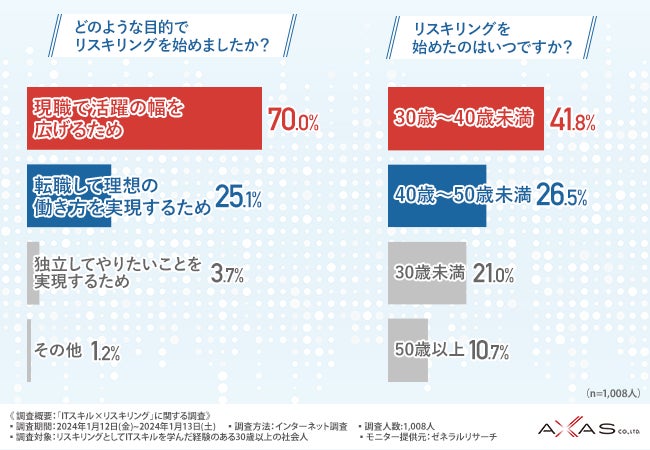 【目的】約7割が現職で活躍の幅を広げるためにリスキリングを開始。