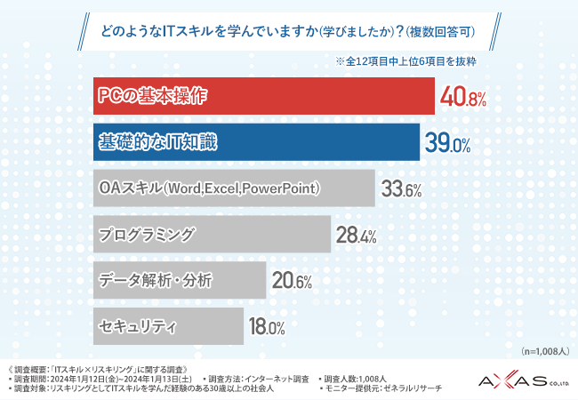 【スキル】リスキリングをして役に立ったスキルは「PCの基本操作」や「基礎的なIT知識」。