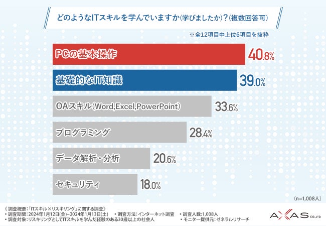 Q:どのようなITスキルを学んでいますか(学びましたか)?(複数回答可)