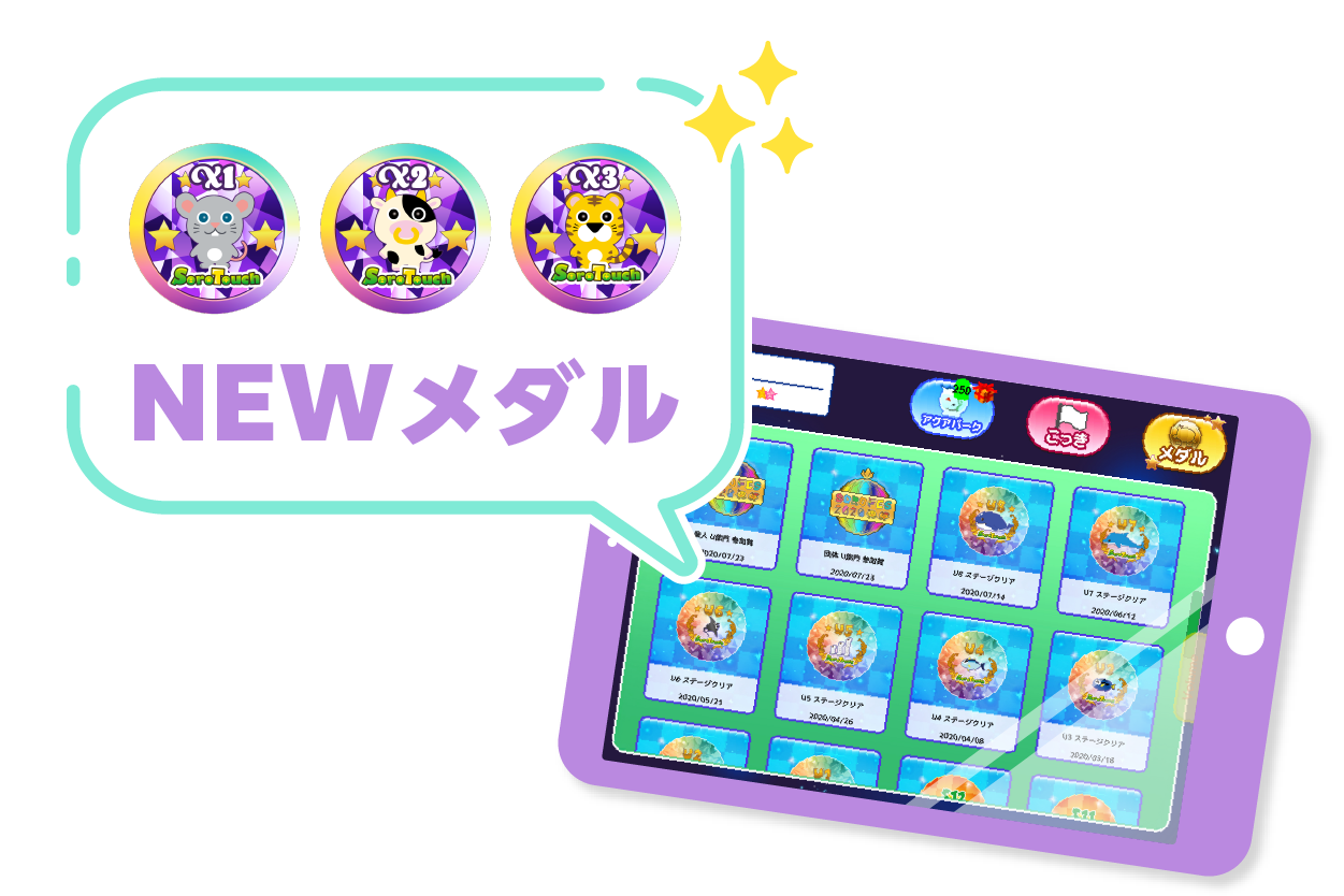 ステージ(カリキュラム)をクリアするとアプリにメダルが届く演出で楽しさを追求し、2年で60%超えの暗算習得率の更なる向上を目指します。