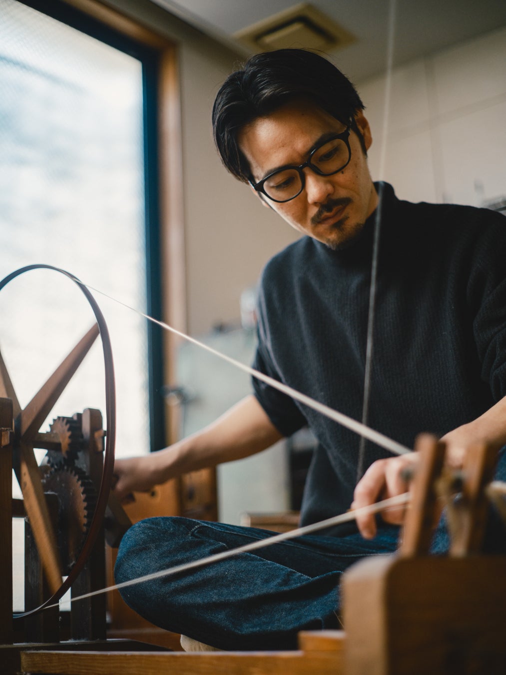 インテリアデザインの専門学校を卒業後、建築会社への勤務を経て、崇さんが二代目を務める「柳染織工房」に入所し染織の道へ。