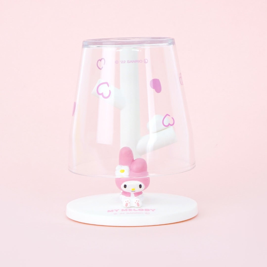 ピンクのずきんが可愛いマイメロディ。ハートが散りばめられたコップがラブリー!