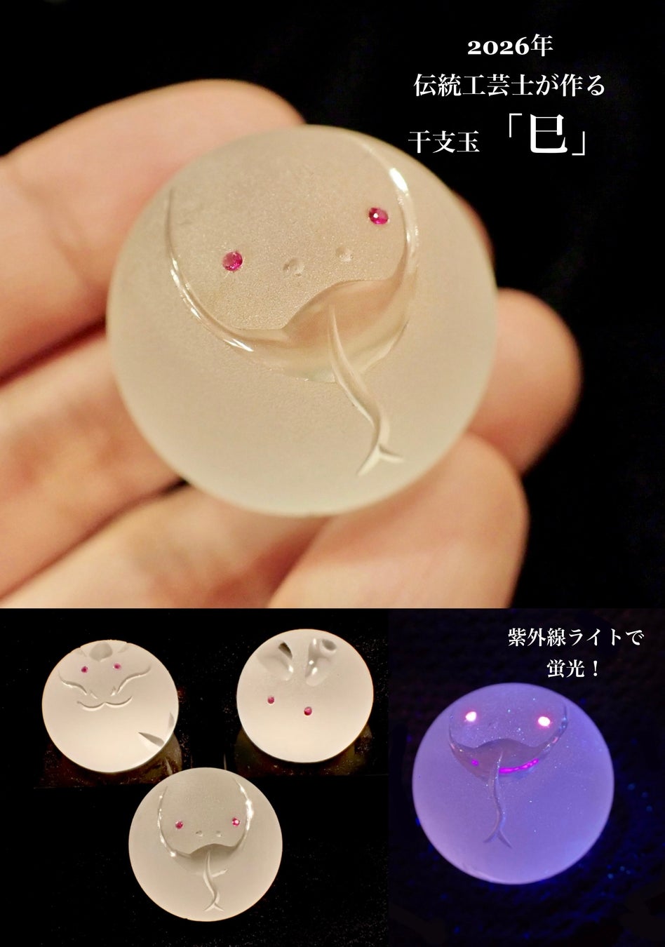 ころんとしたフォルムが愛らしい水晶の干支玉は、熟練の伝統工芸士が一つひとつ丁寧に仕上げた逸品。