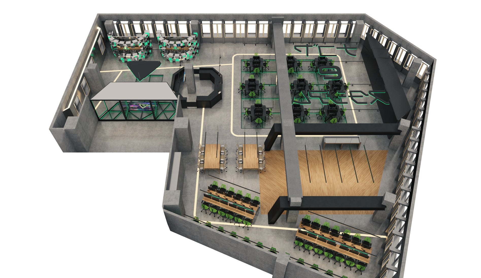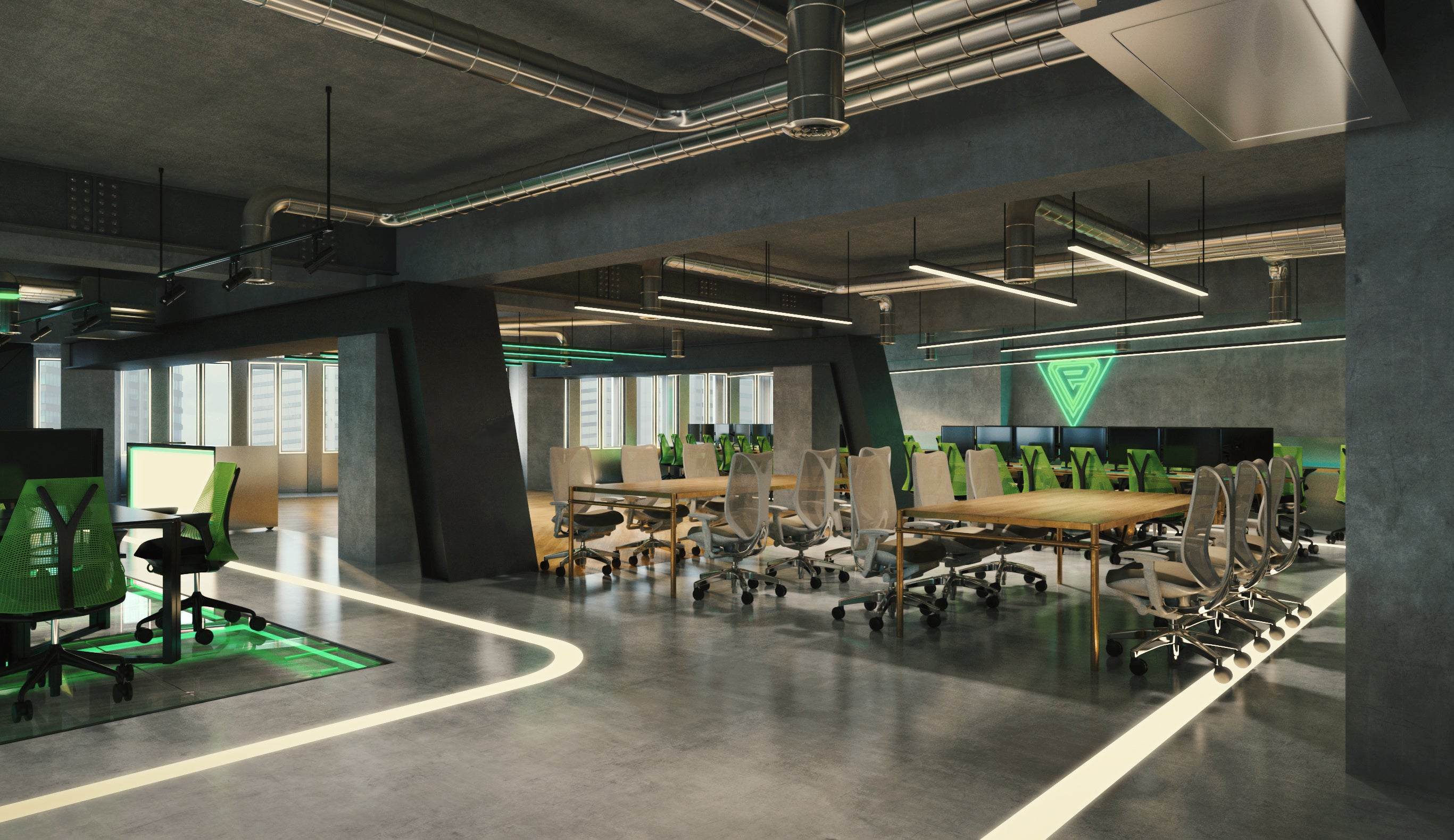 ハイスペックゲーミングPCを1人1台使用できる環境・象徴的なネオンと内装