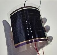 ロールtoロール方式の精密薄膜塗工技術を用いて開発。フィルムタイプのためフレキシブルで、低い照度環境でも発電が可能。