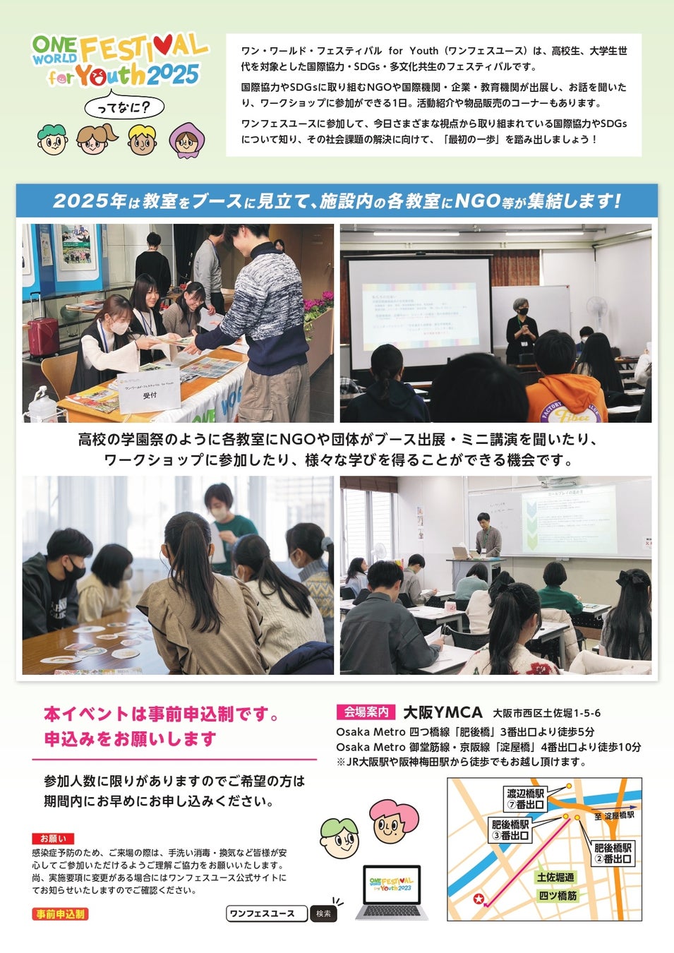 NGO等の活動紹介やワークショップ、U25交流企画や特別プログラムを通じて、国際課題への学びとユース同士の交流を深めるイベントを2025年12月21日(日)、大阪市西区の会場で開催します。