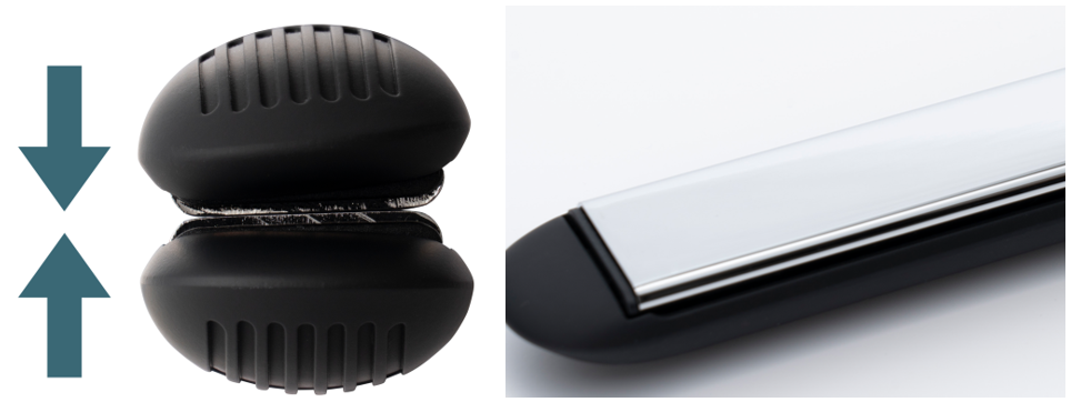 上下左右に動くプレートによってどの方向からでも均一に力が入り、ムラのない綺麗なアレンジが簡単にできます。