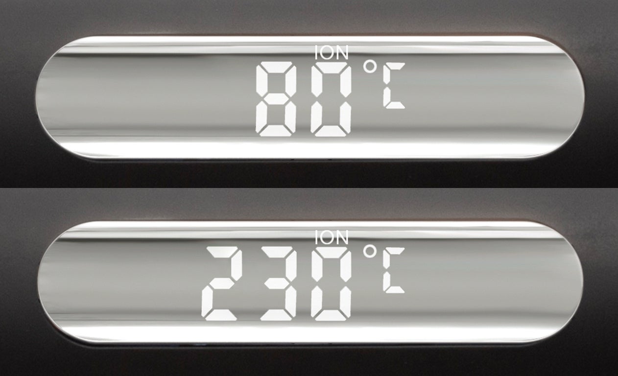 髪質やスタイリングに合わせて、31段階(5℃間隔)の温度設定が可能。温度は液晶モニターにリアルタイムで表示されるため、ひと目で温度状況がわかります。