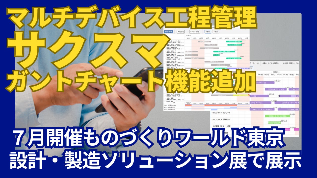 ものづくりワールドの設計・製造ソリューション展(東京)で、スマホ・タブレットだけで使える工程管理システム「サクスマ」の展示を行います。