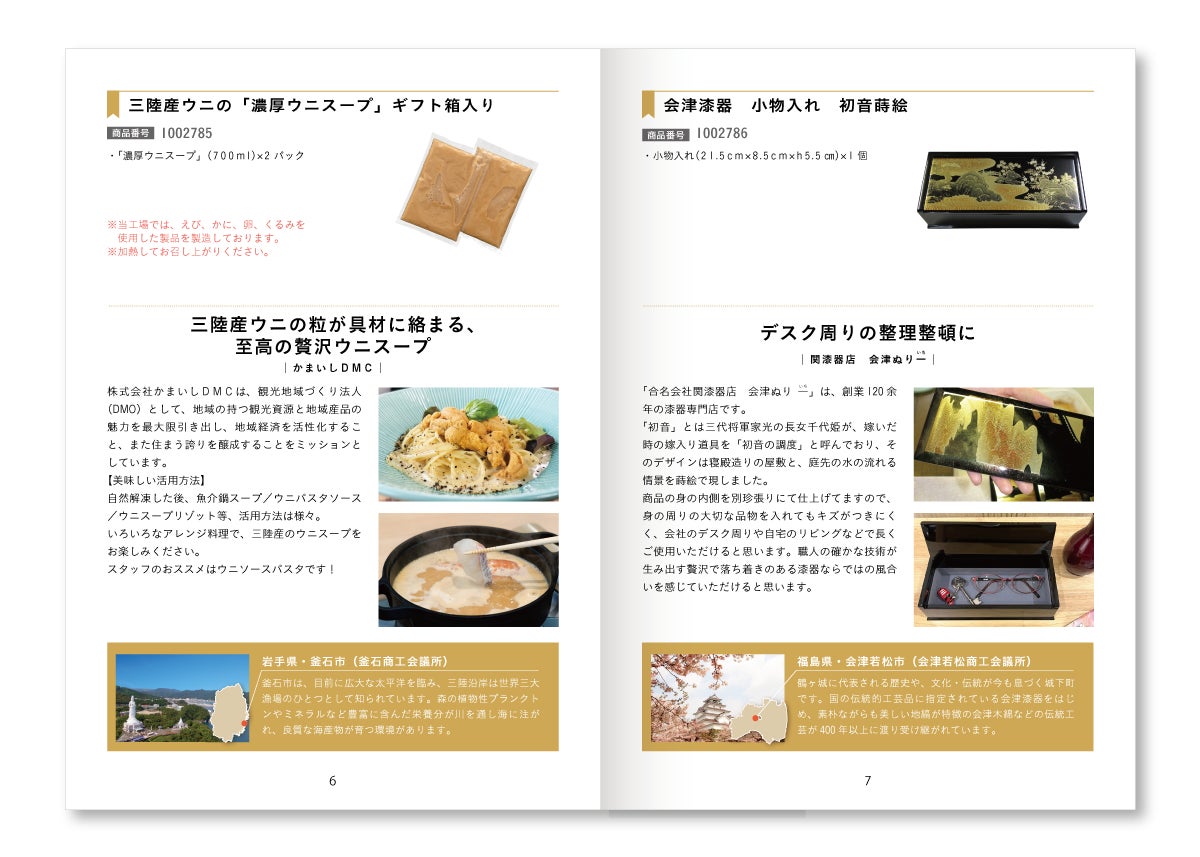 カタログギフトには商品の紹介とともに、生産者のインタビューやその地域の魅力を掲載しています。