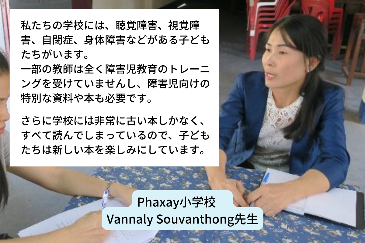 | プロジェクト名 | 本の飢餓から子どもたちを守りたい。ラオス障害児にバリアフリー図書を |