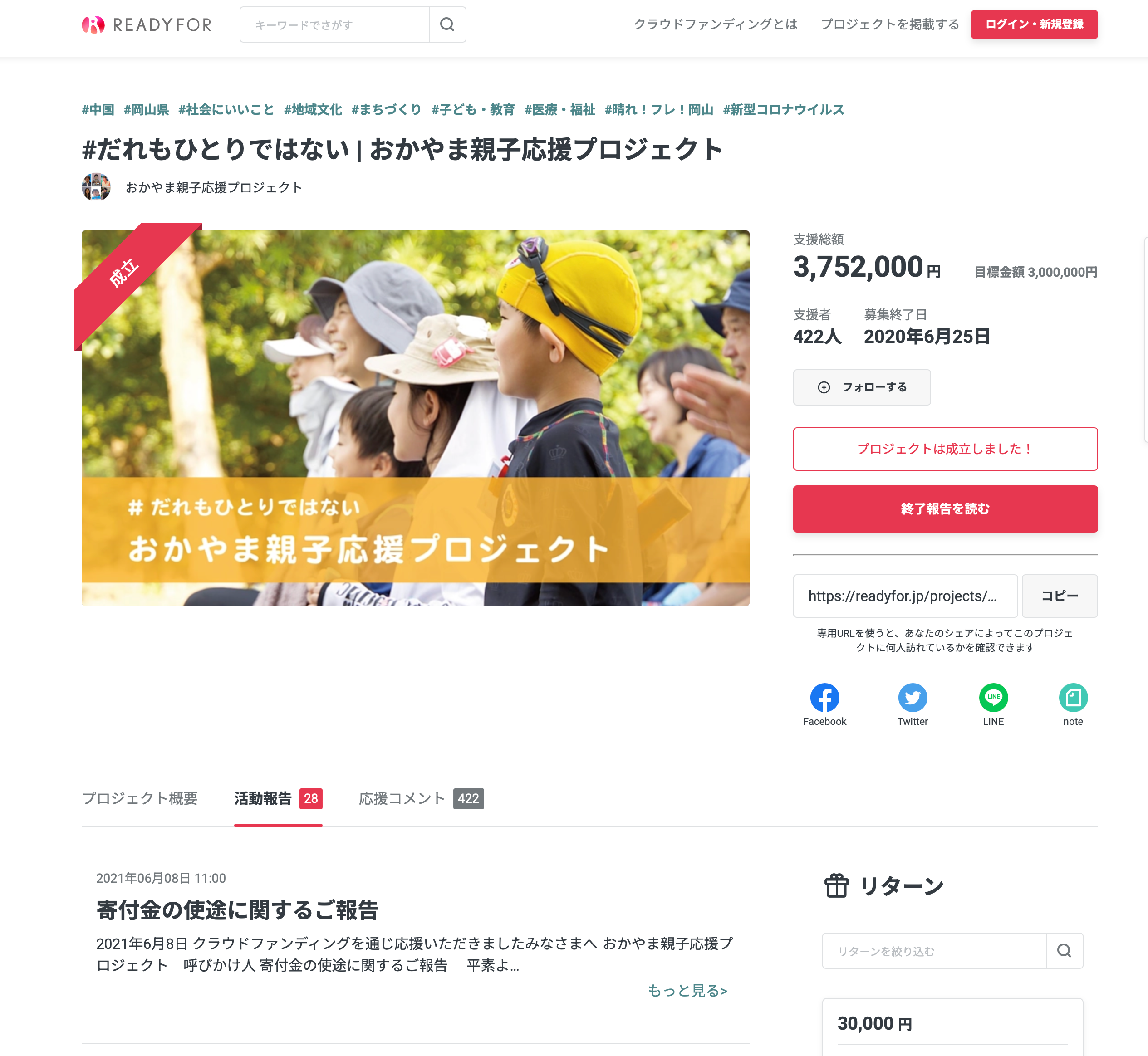 おかやま親子応援プロジェクト https://readyfor.jp/projects/okayamaoyako/announcements
