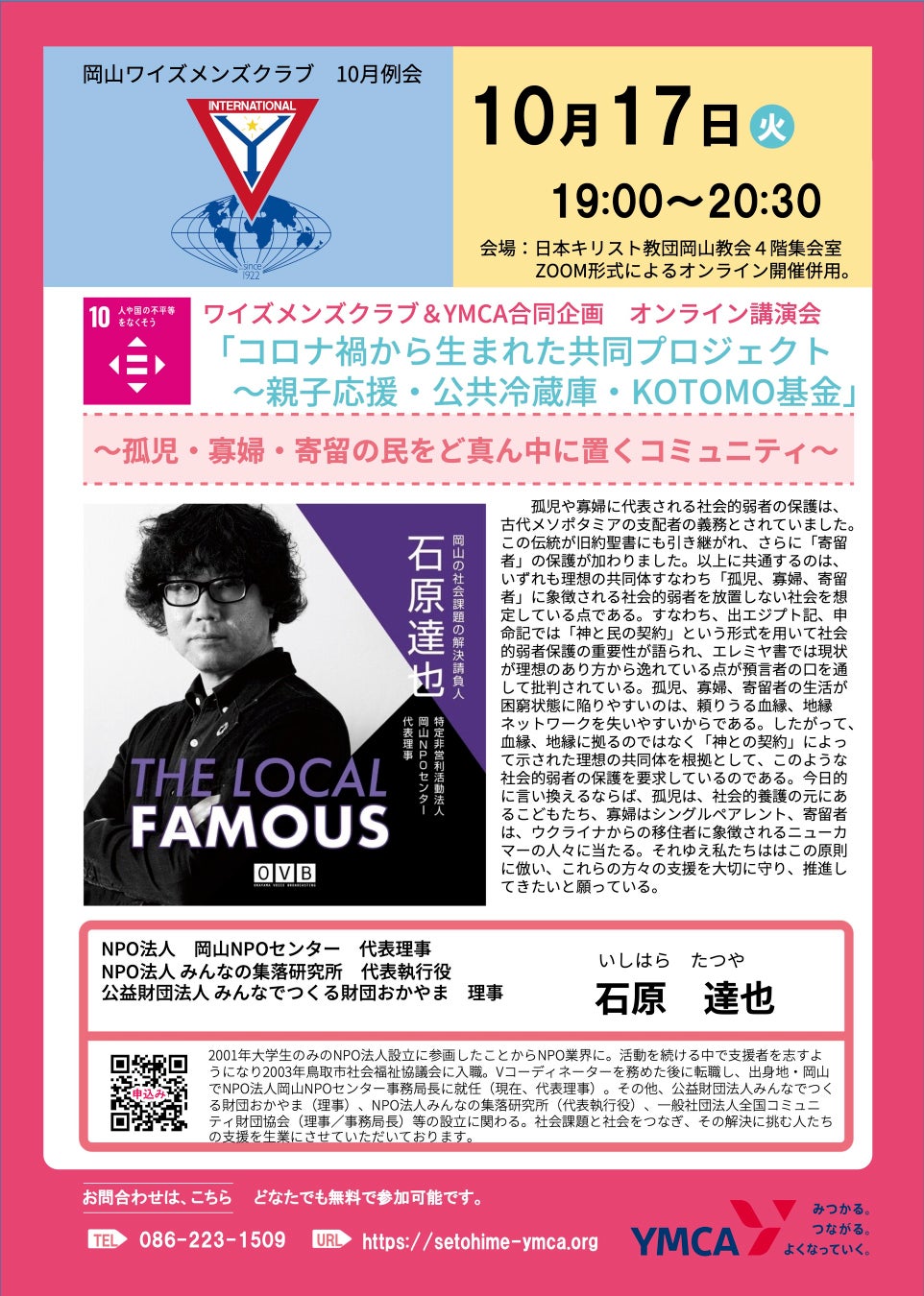 岡山ワイズメンズクラブ&YMCAせとうち合同企画 オンライン&リアル講演会 「コロナ禍から生まれた共同プロジェクト〜親子応援・公共冷蔵庫・KOTOMO基金」