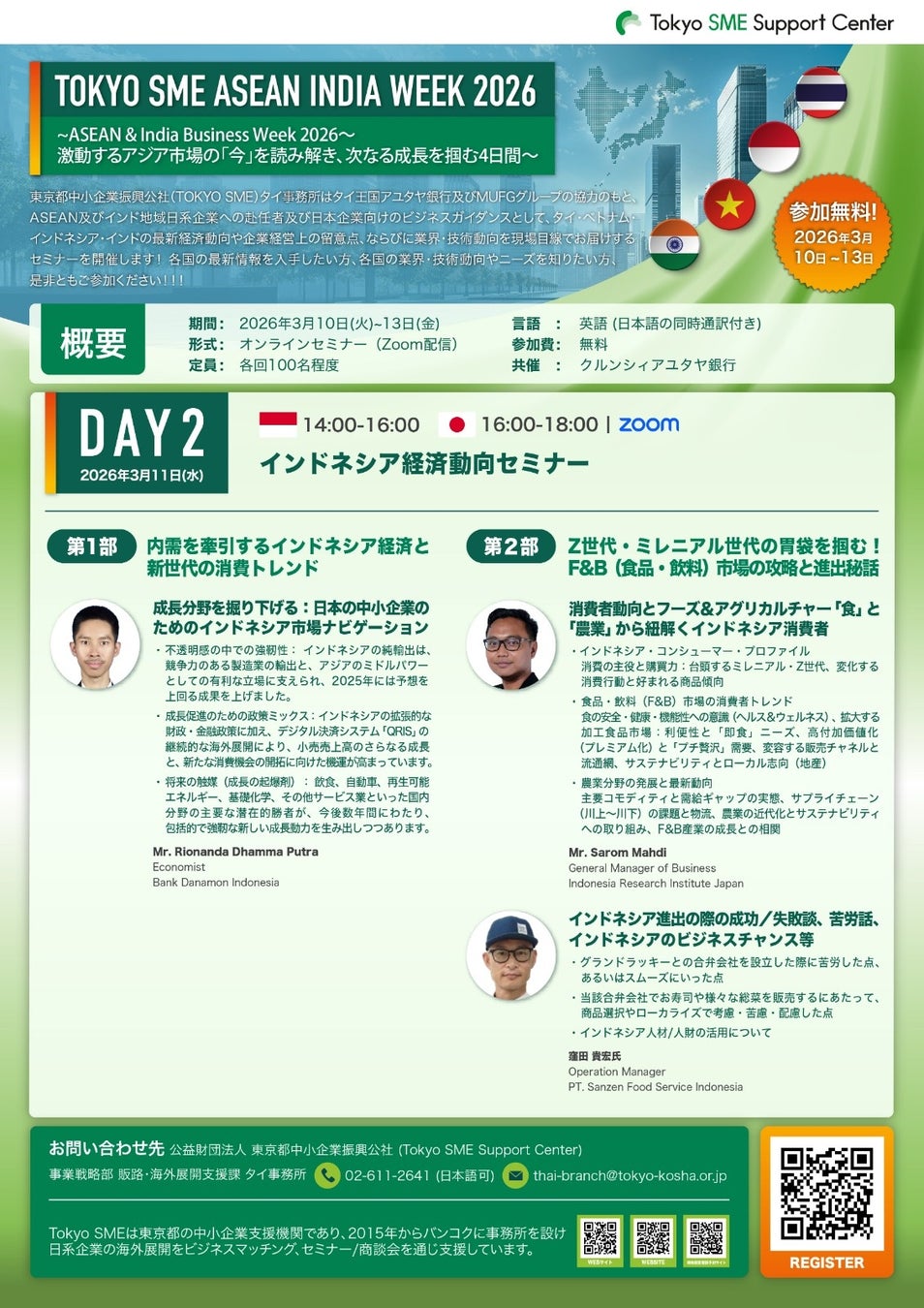 東京都中小企業振興公社(Tokyo SME)タイ事務所は、タイ・ベトナム・インドネシア・インドの最新経済動向や業界・技術動向を現場目線でお届けする「Tokyo SME ASEAN INDIA Week 2026」を開催します。