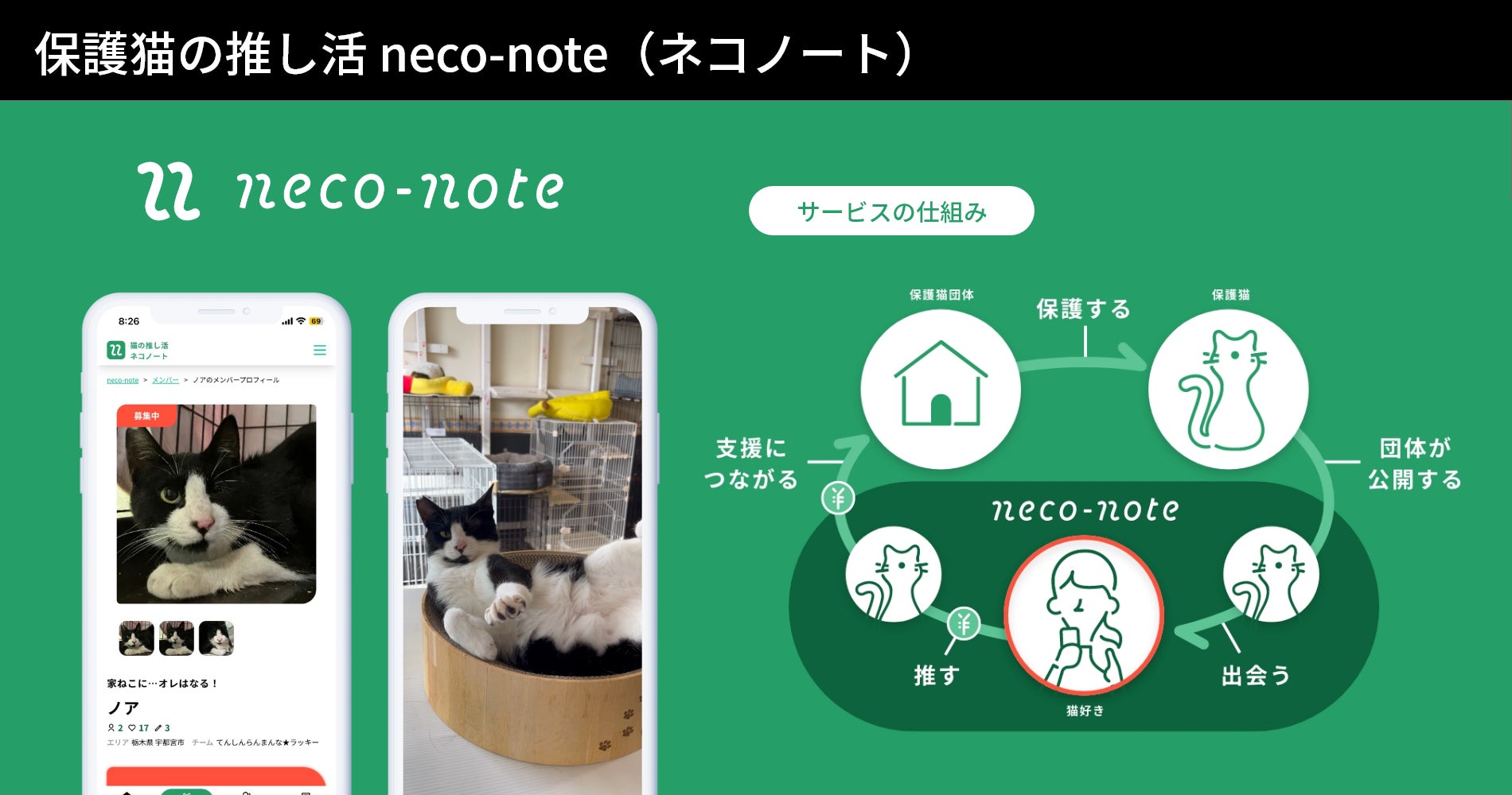 推し活で保護猫を支援するサービス「neco-note(ネコノート)」の運営