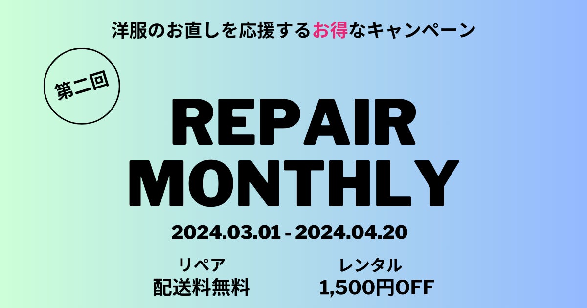合同会社YOBOSHI、洋服のお直し、レンタルがお得になるマンスリーキャンペーン“REPAIR MONTHLY(リペア・マンスリー)“ 第二弾を開催!3月1日よりキャンペーンを開始。