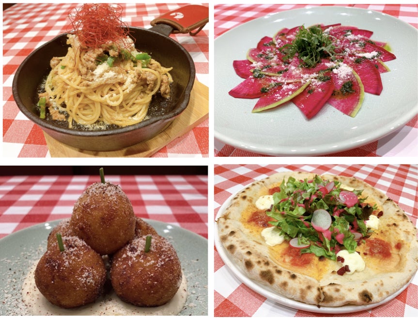 ご来店されるゲストを飽きさせないよう、常に新しいメニューの開発に取り組んでおりますが、ディナーメニューを完全リニューアルしたのは2021年8月のオープン以来初。おひとりさまでも楽しめるスパゲティやコロッケ、仲間と囲む美味しい時間にぴったりなカルパッチョやピッツァなど、アットホームさと新しい美味しさを兼ね備えたメニューを提供いたします。
