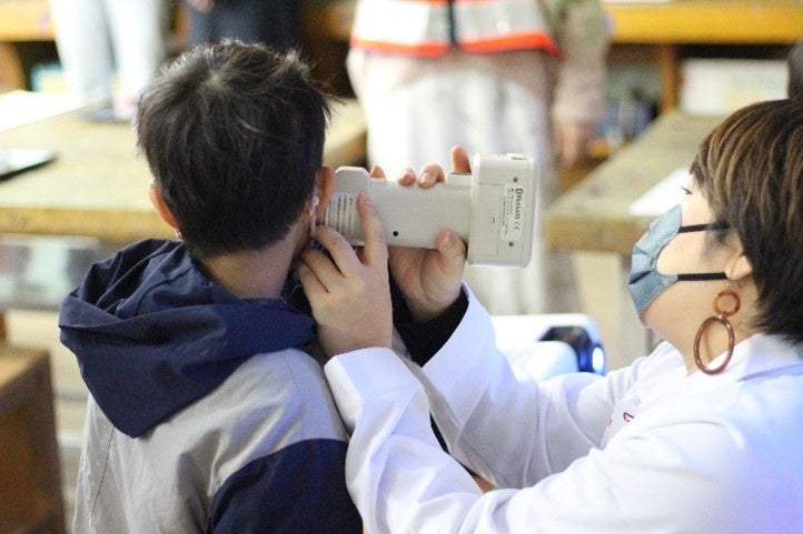 測定を希望する児童は長蛇の列となり、児童たちは楽しみながら、それぞれの肌の色の違いについて考えました。