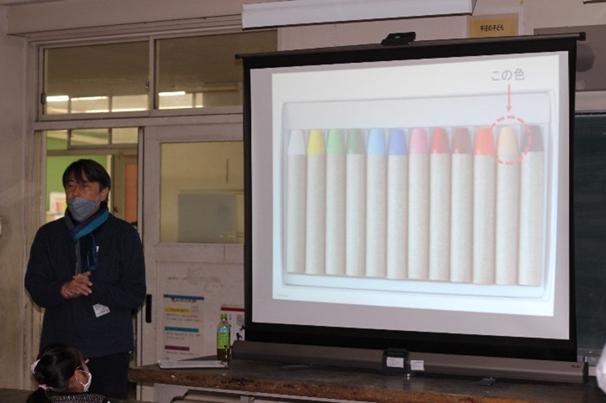 児童は「自分のクレヨンの肌色は1本しかないので、肌色は1色だと思っていた。こんなにたくさんの色があるとは思わなかった。」など、初めは色の多さに少々戸惑っていた様子。