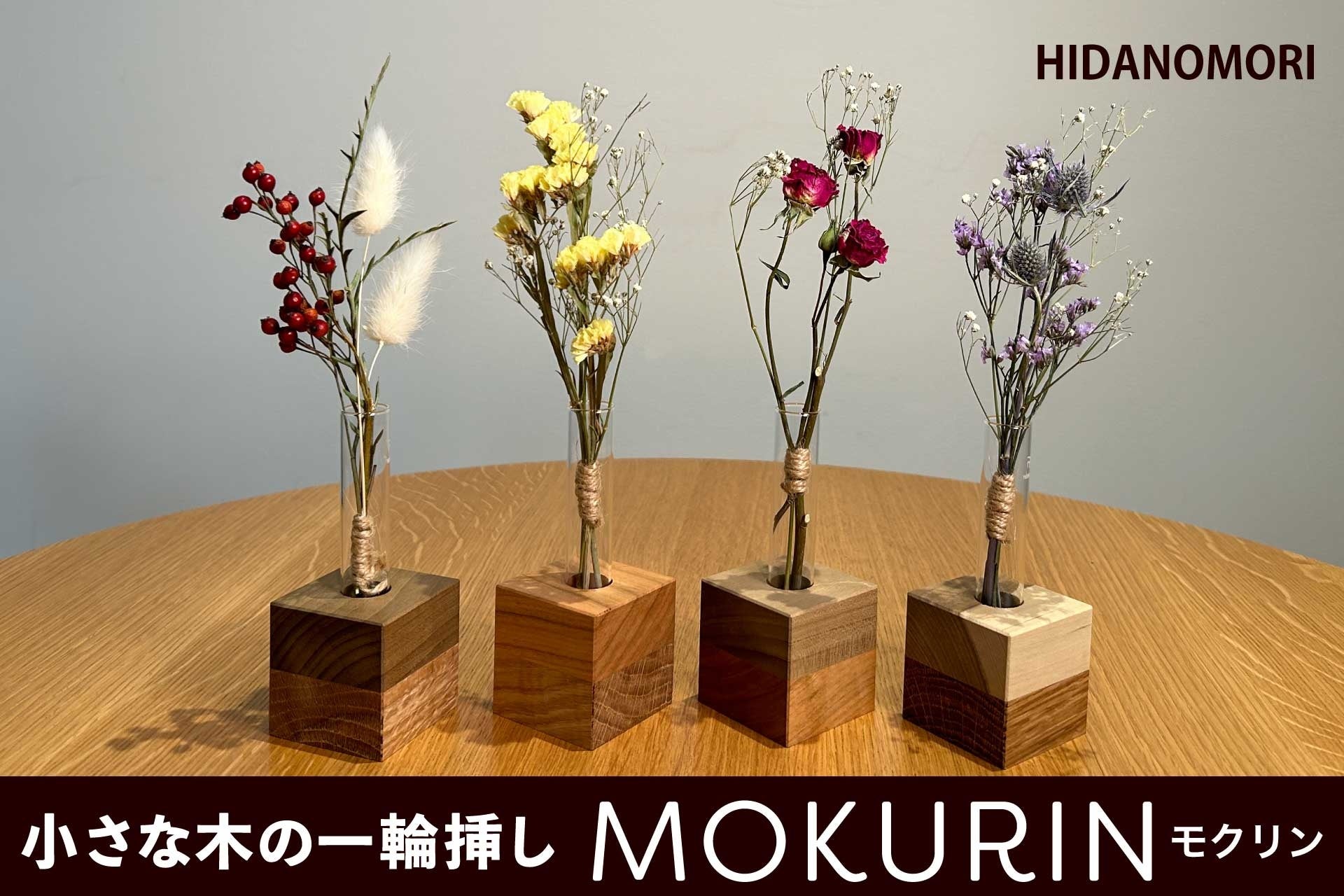 <飛騨市産広葉樹を活用>木目や風合いなど木の個性を楽しめる手のひらサイズの一輪挿しが登場! 「ひだの森小さな一輪挿し『MOKURIN(モクリン』」12月20日(水)より販売開始