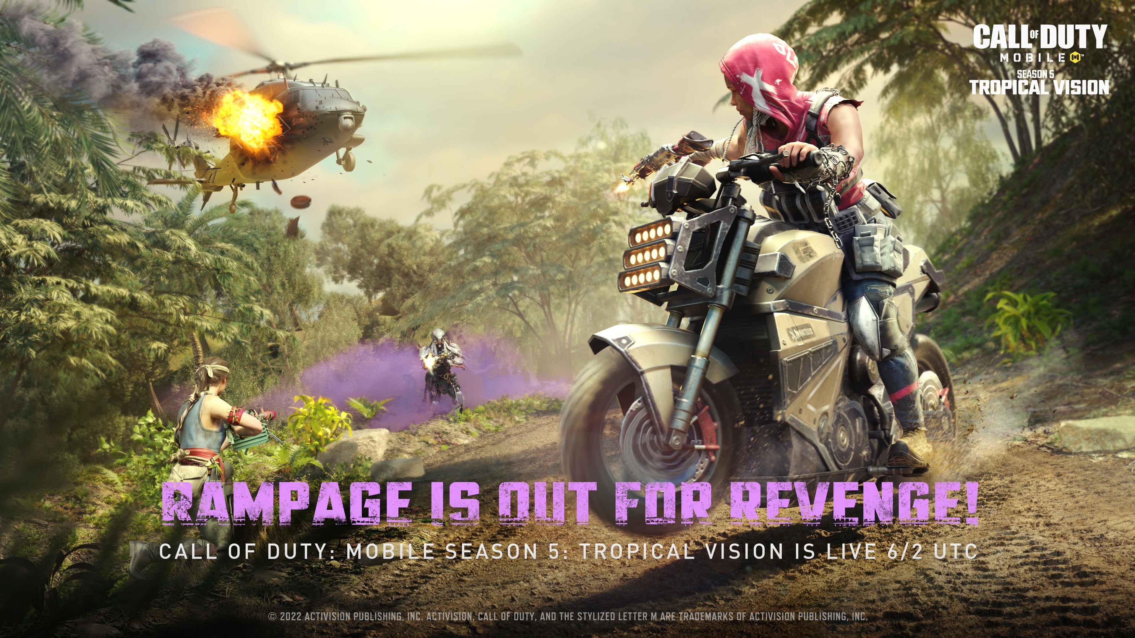 Activision Publishingの世界的人気ゲームアプリ『Call of Duty: Mobile』は、Season5「Tropical Vision(トロピカル ヴィジョン)」を6月2日(木)午前10時から配信開始します。無法地帯のジャングルが広がる世界をお楽しみください!