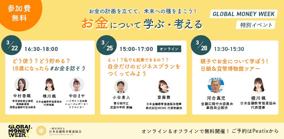 【日本金融教育推進協会】【無料】お金について学ぶ・考える!親子・学生向け金融教育イベント開催*日銀見学/起業ワークショップ/お金の基礎知識セミナー【グローバルマネーウィーク】