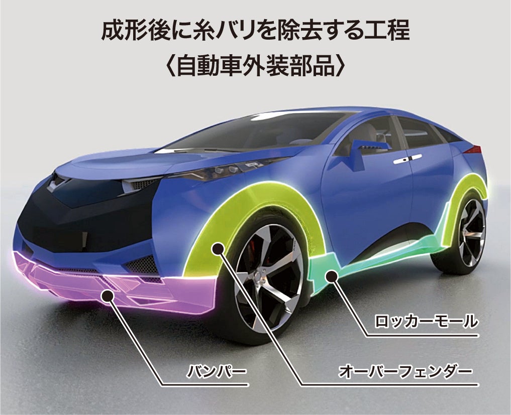 本システムは、従来のプラスチックのパーティングライン処理※やバリ除去工程において、効率的かつ
